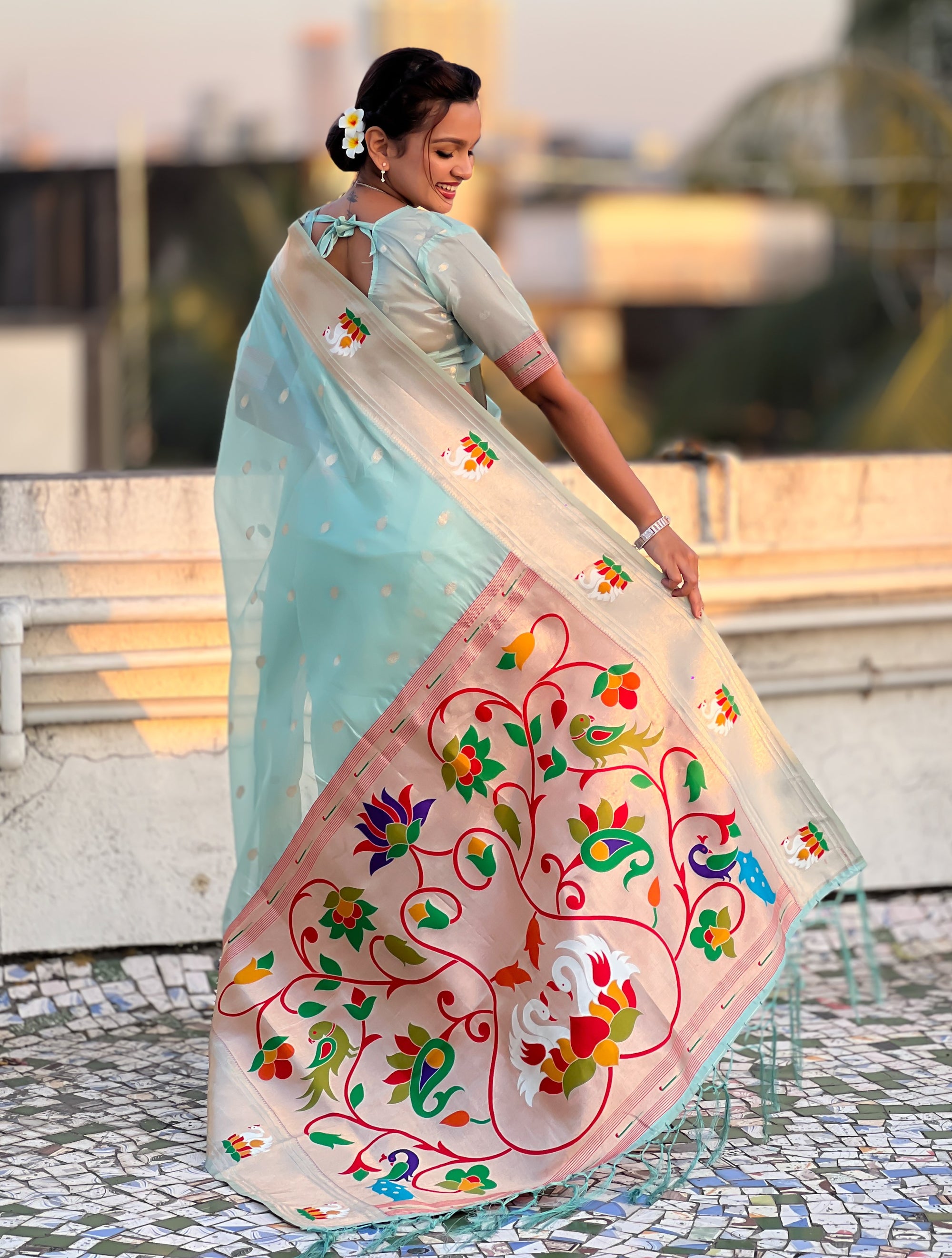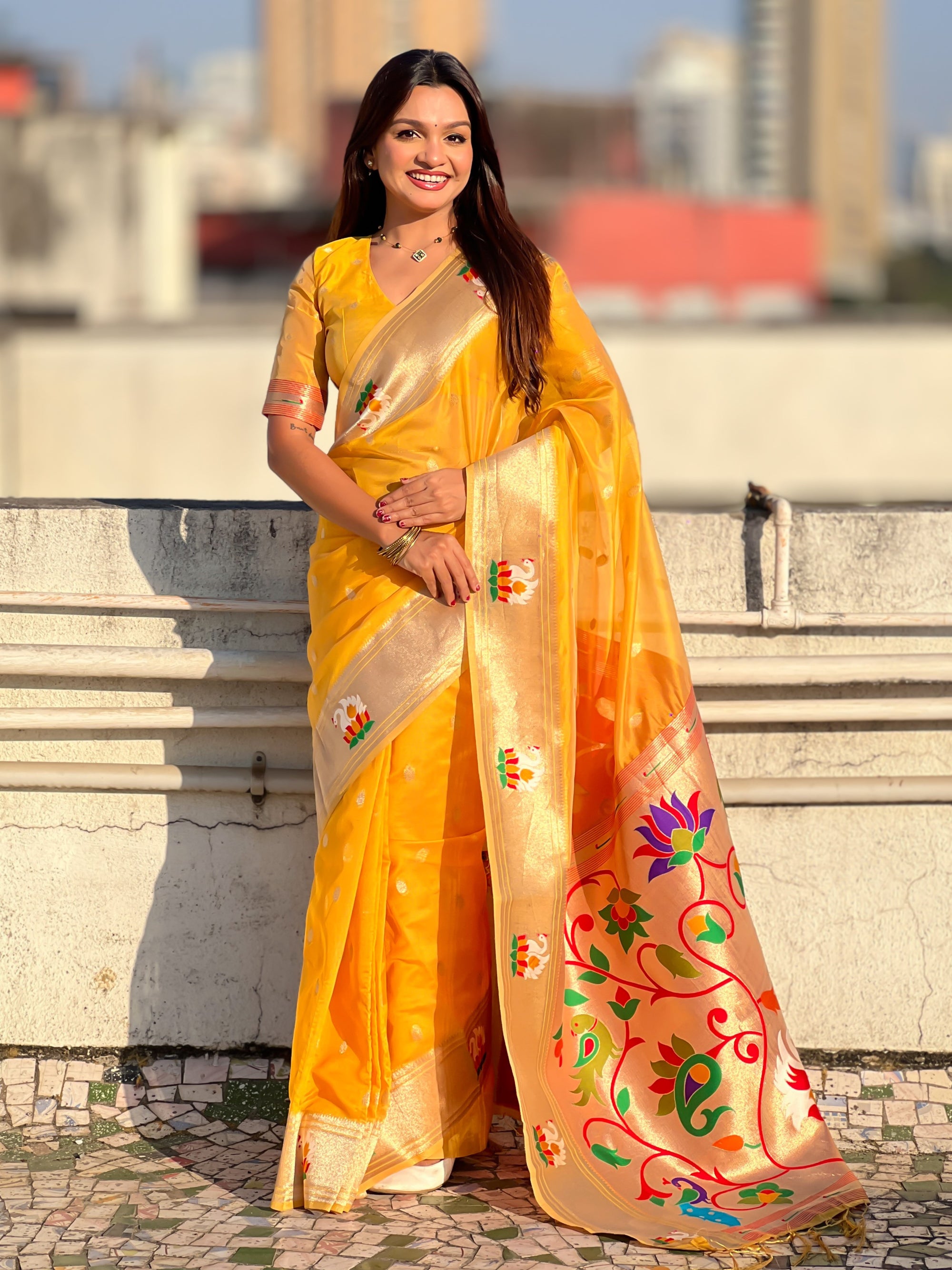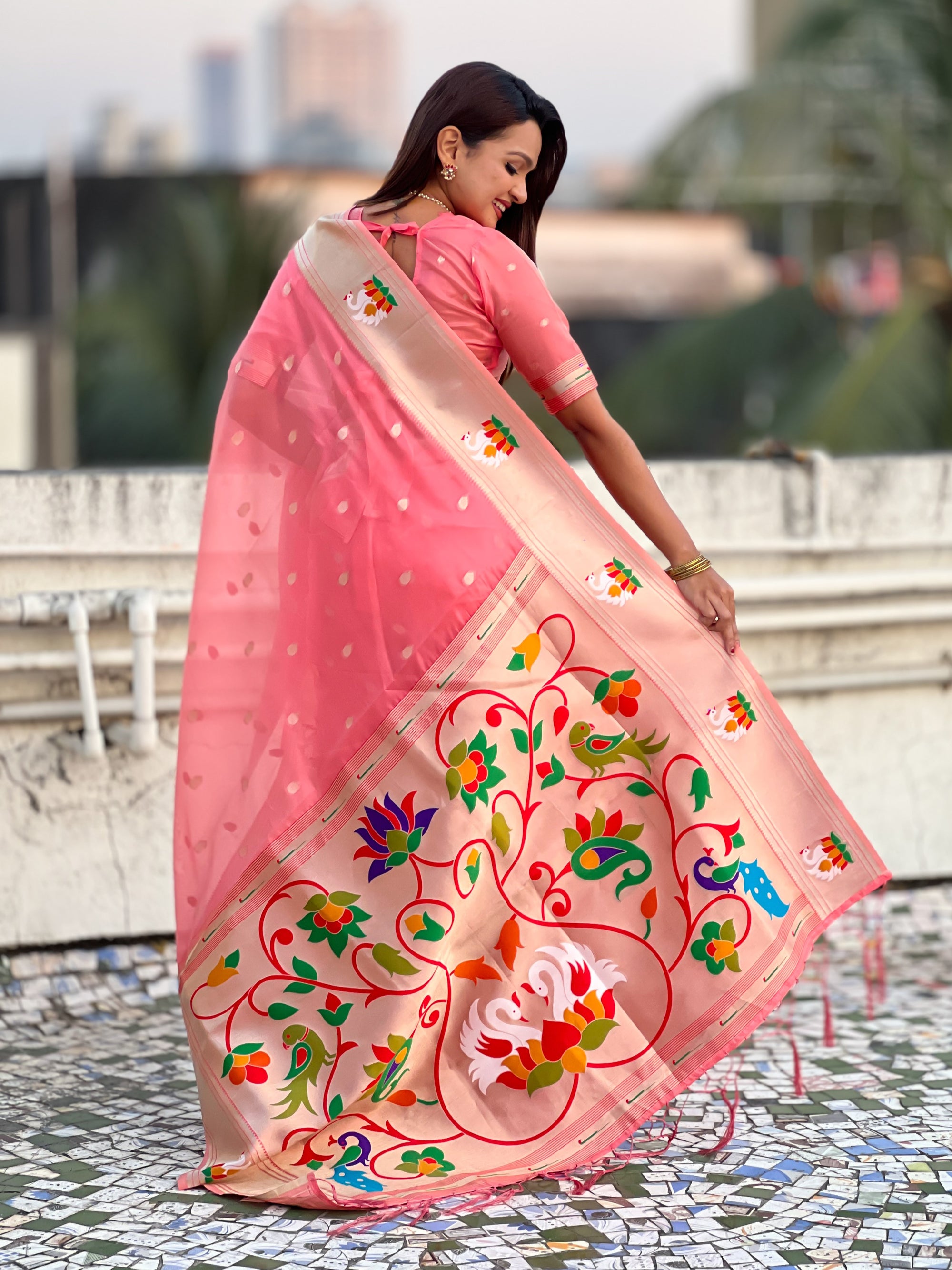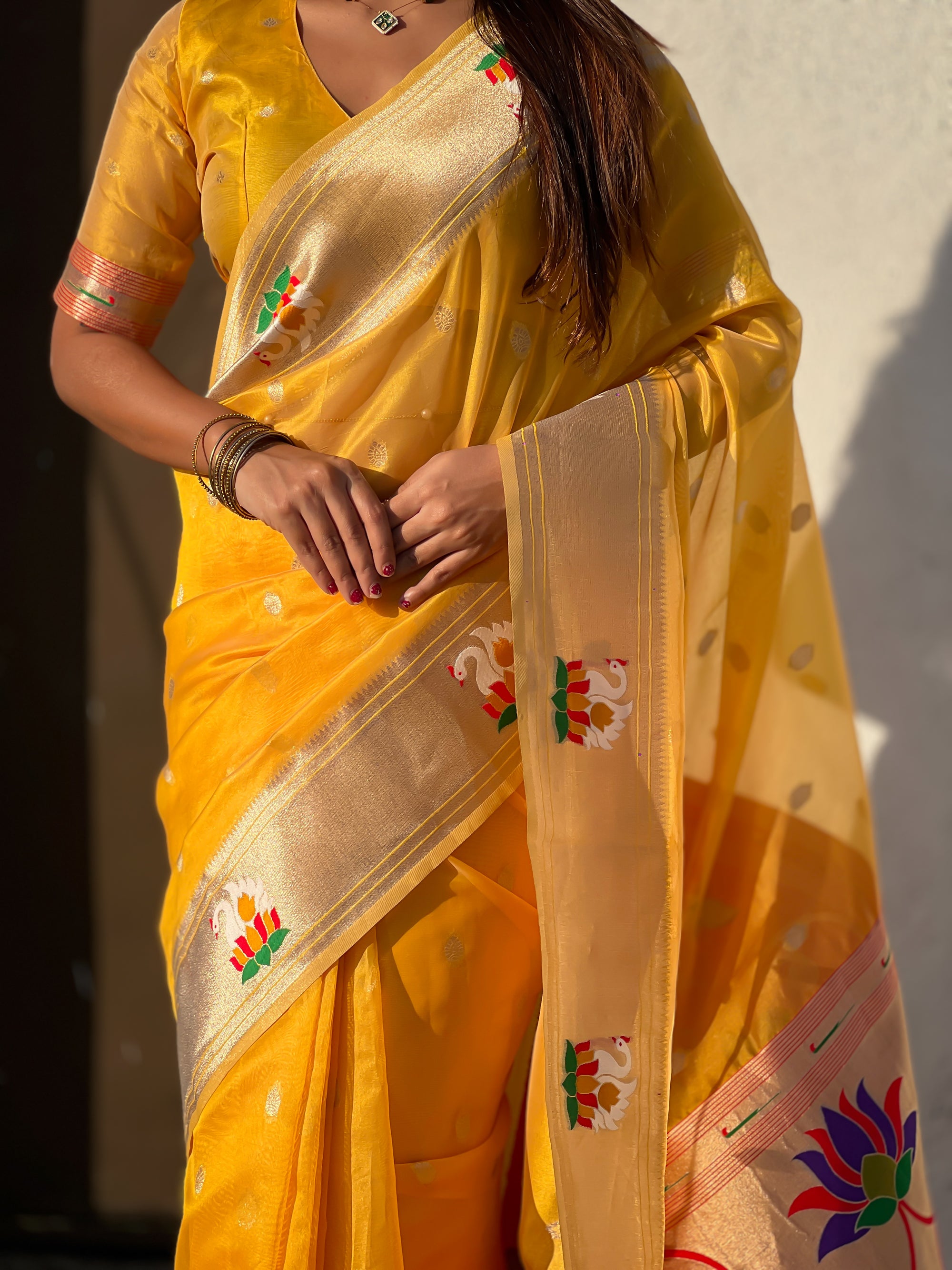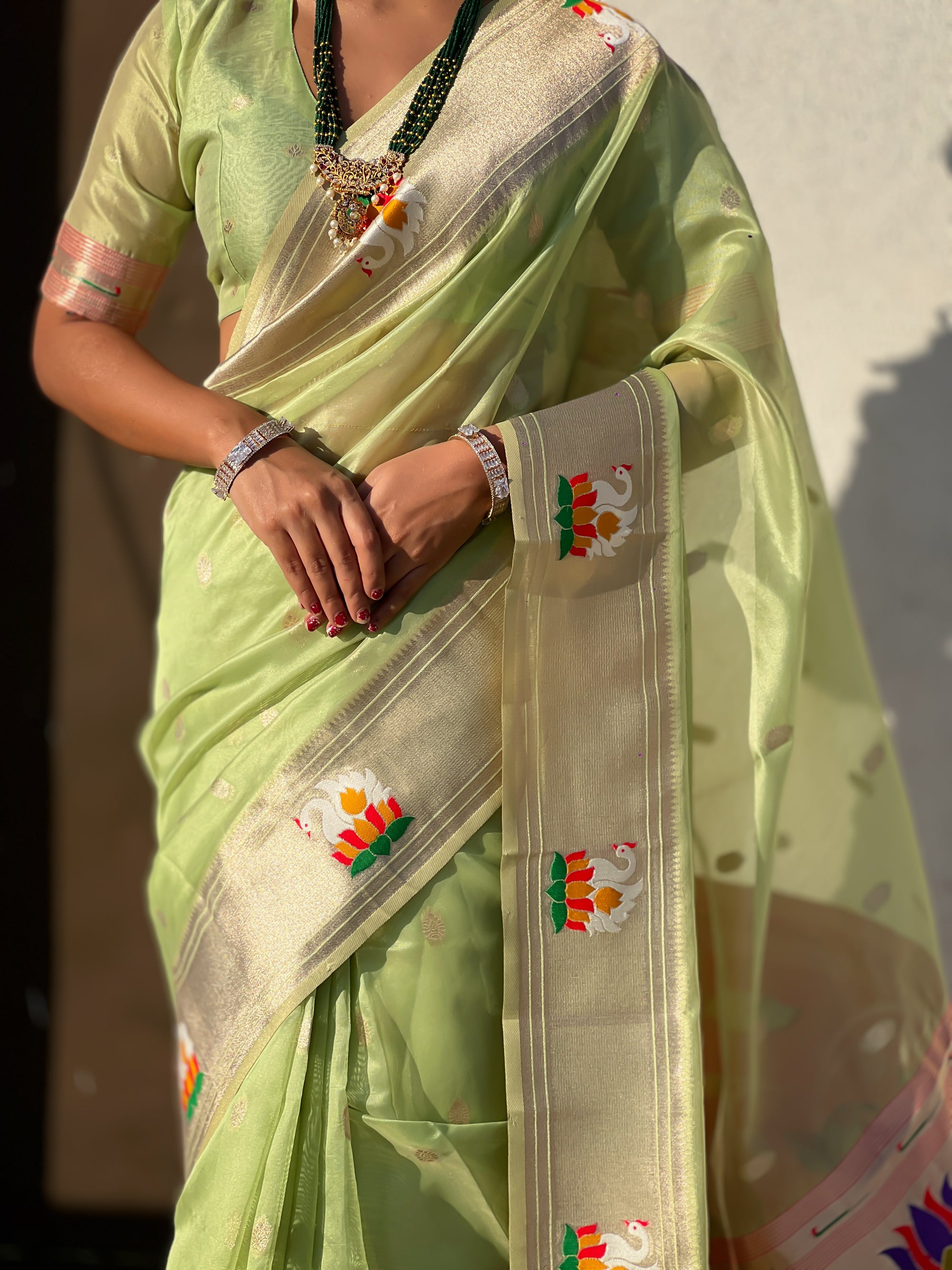 Organza silk sarees are known for their lightweight, airy texture and sheer elegance. Crafted from fine silk, these sarees feature a delicate and crisp fabric that drapes beautifully. Often adorned with intricate embroidery or minimalistic designs, organza silk sarees offer a sophisticated and graceful look, making them perfect for weddings, receptions, and festive occasions.