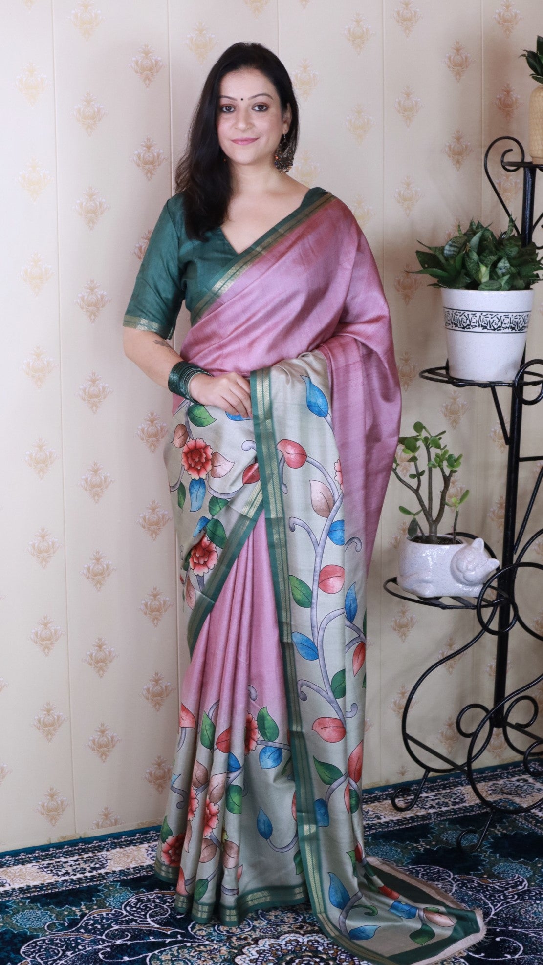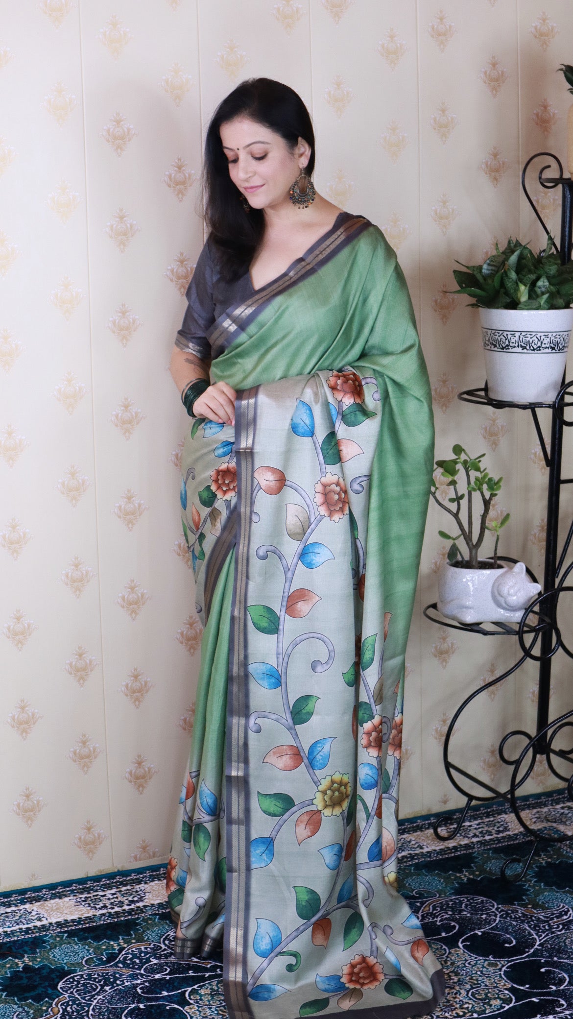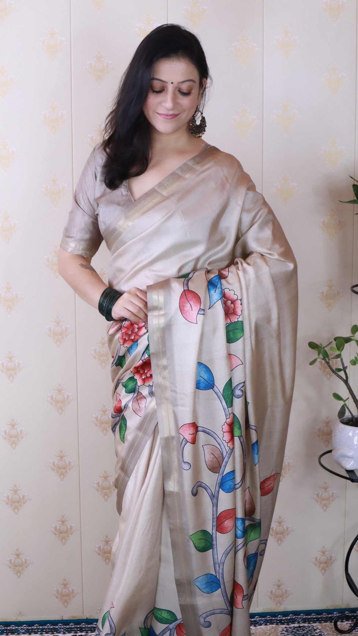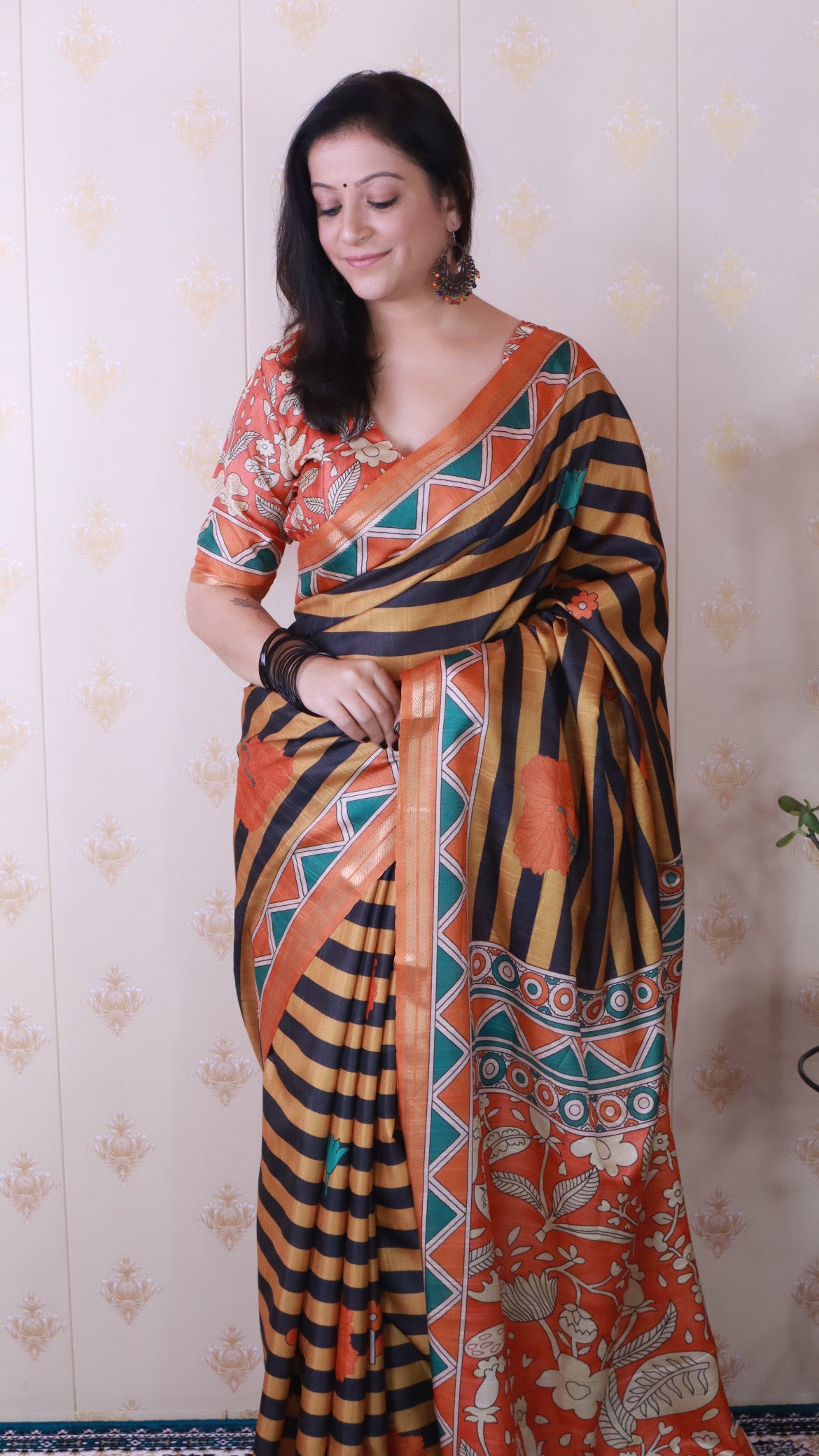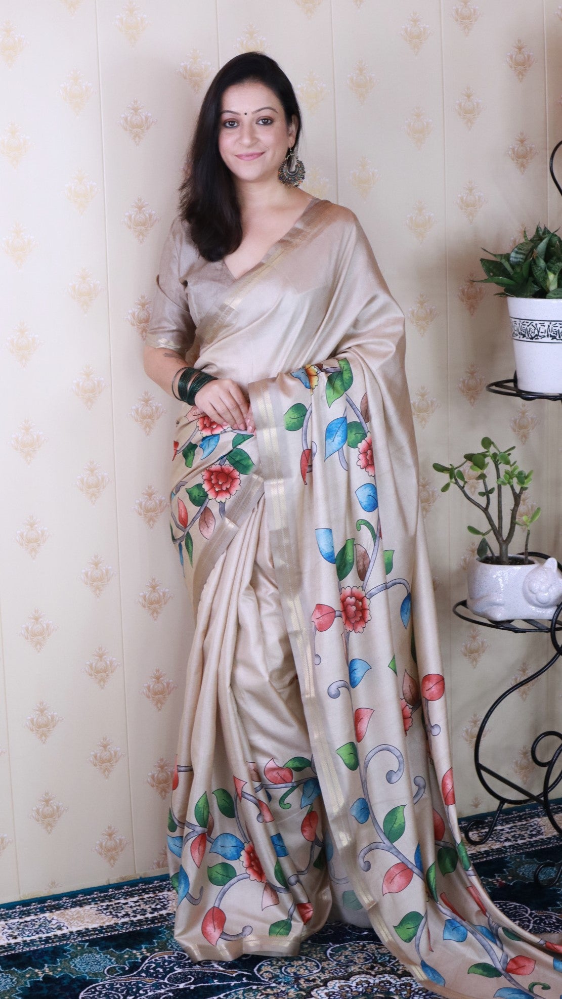 Discover the charm of tradition with this Tussar Silk Saree - crafted from soft, breathable fabric that feels gentle on the skin. Known for its rich texture and natural sheen, Tussar Silk offers a perfect balance of elegance and comfort. The fabric drapes beautifully and is light in weight, making it ideal for long hours of wear at festive occasions or special gatherings. It’s a graceful blend of style and ease, designed to keep you comfortable while looking effortlessly stunning.