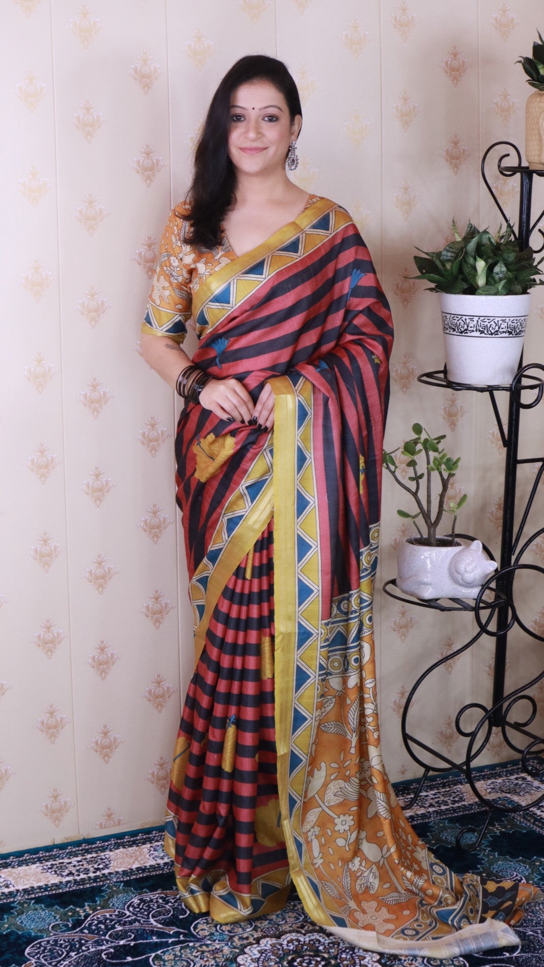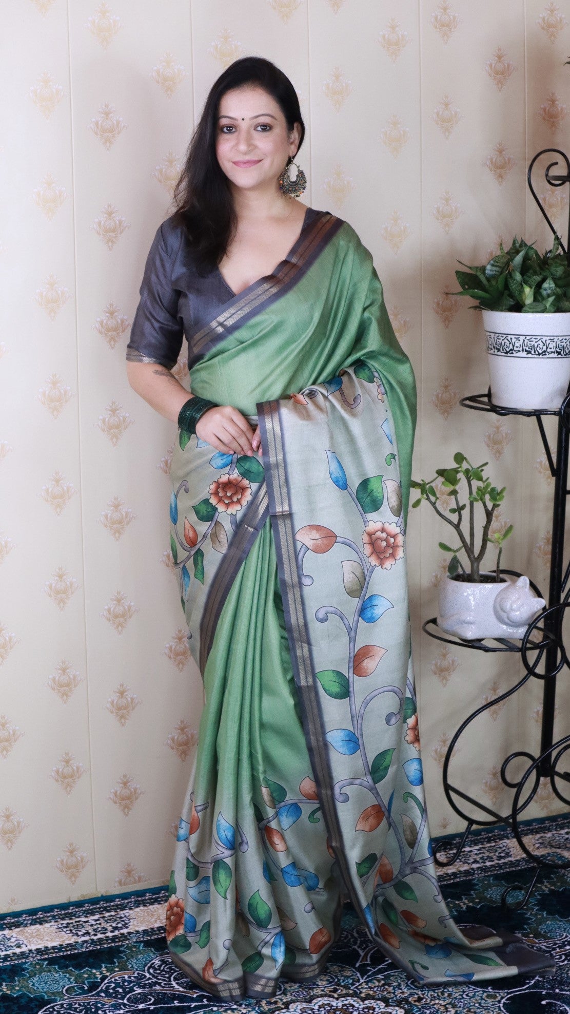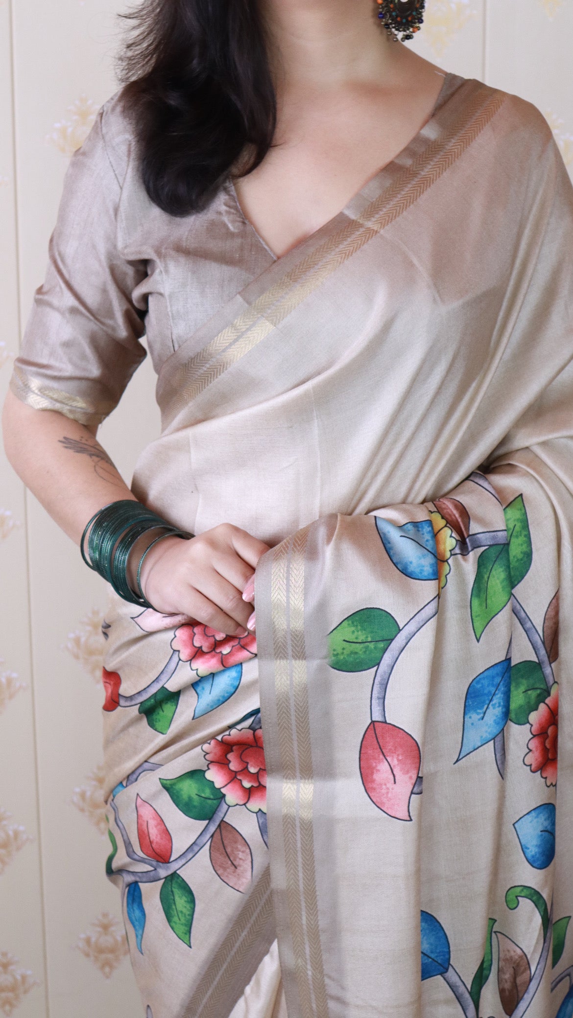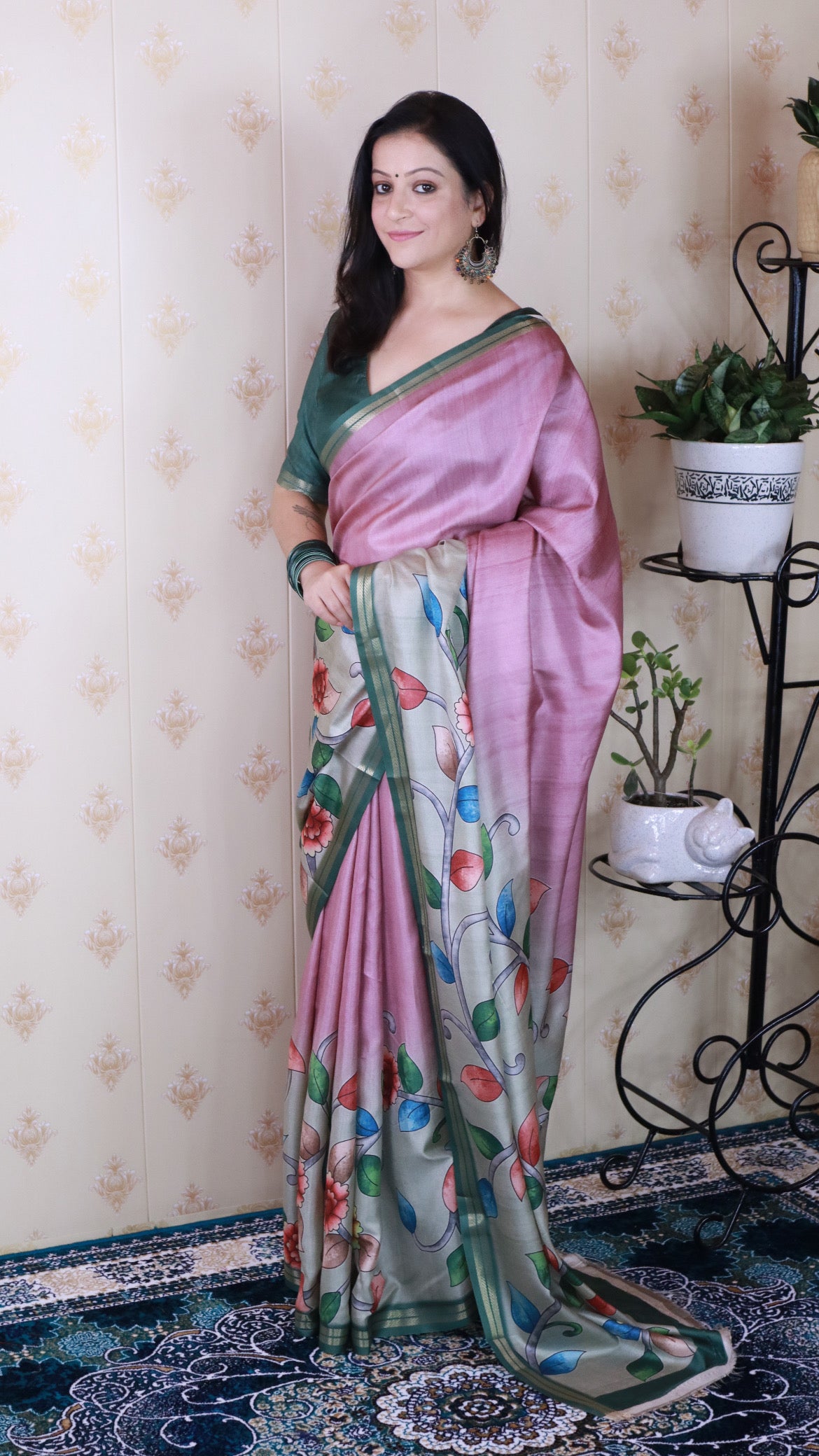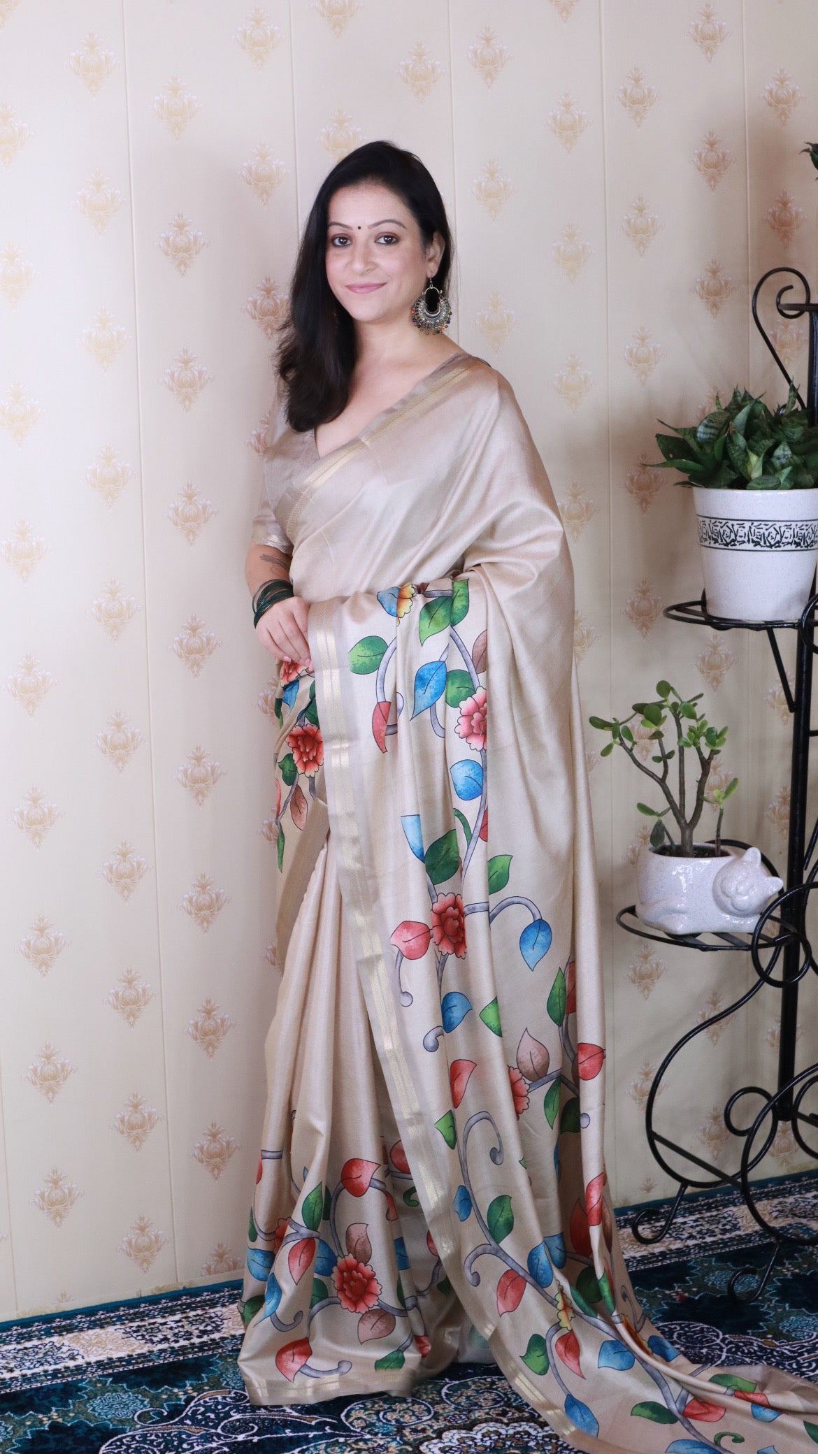 Discover the charm of tradition with this Tussar Silk Saree - crafted from soft, breathable fabric that feels gentle on the skin. Known for its rich texture and natural sheen, Tussar Silk offers a perfect balance of elegance and comfort. The fabric drapes beautifully and is light in weight, making it ideal for long hours of wear at festive occasions or special gatherings. It’s a graceful blend of style and ease, designed to keep you comfortable while looking effortlessly stunning.