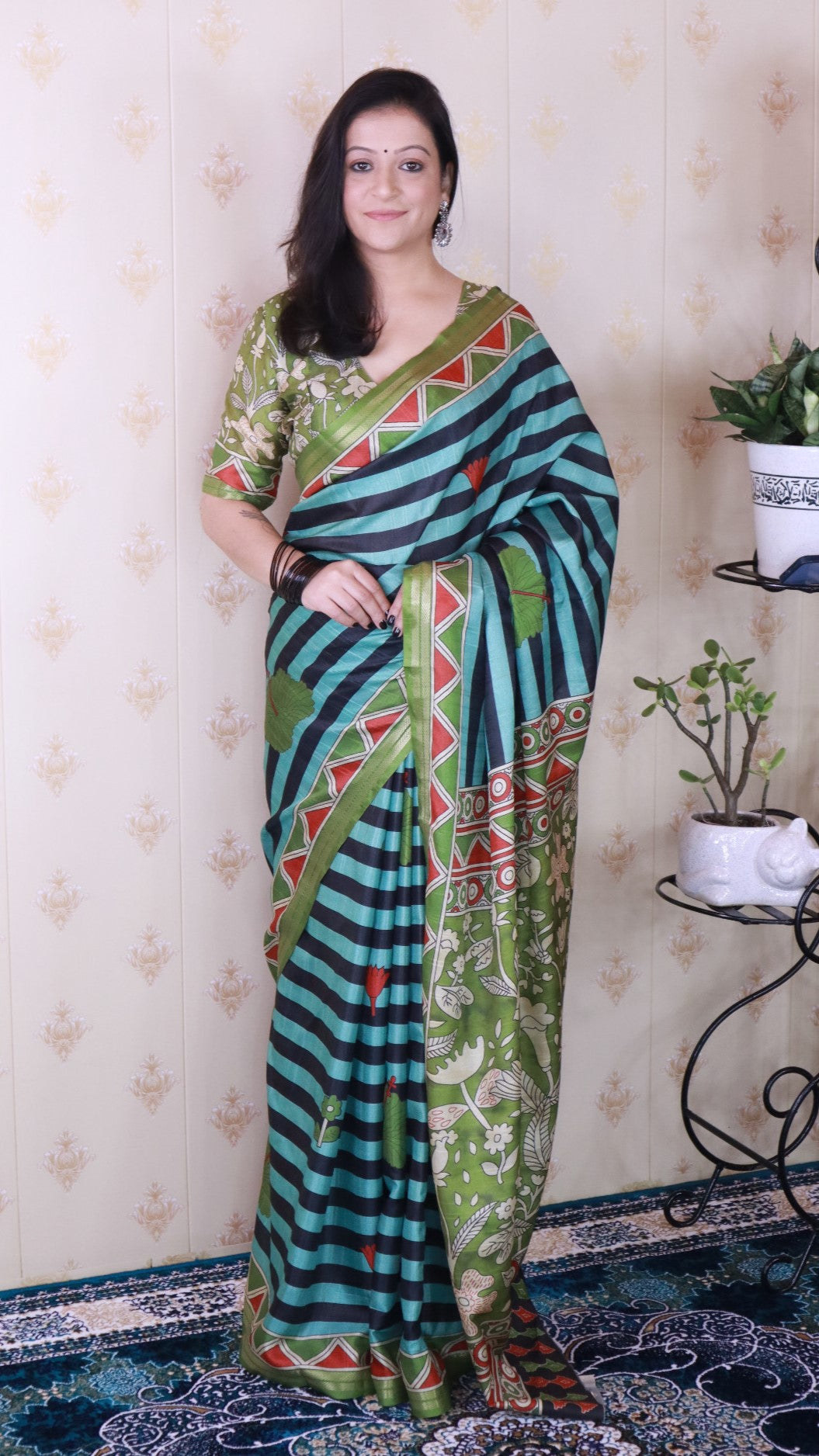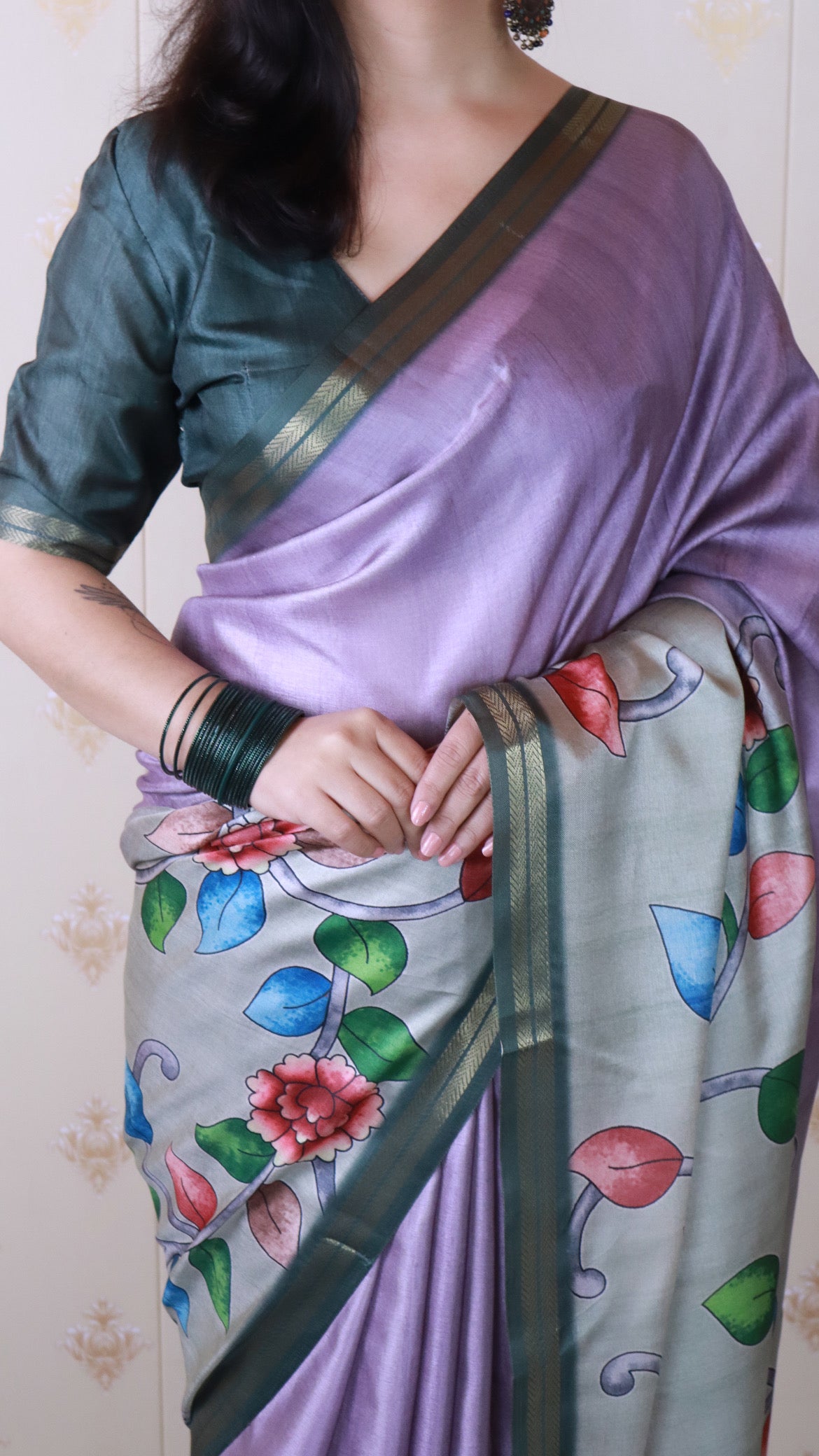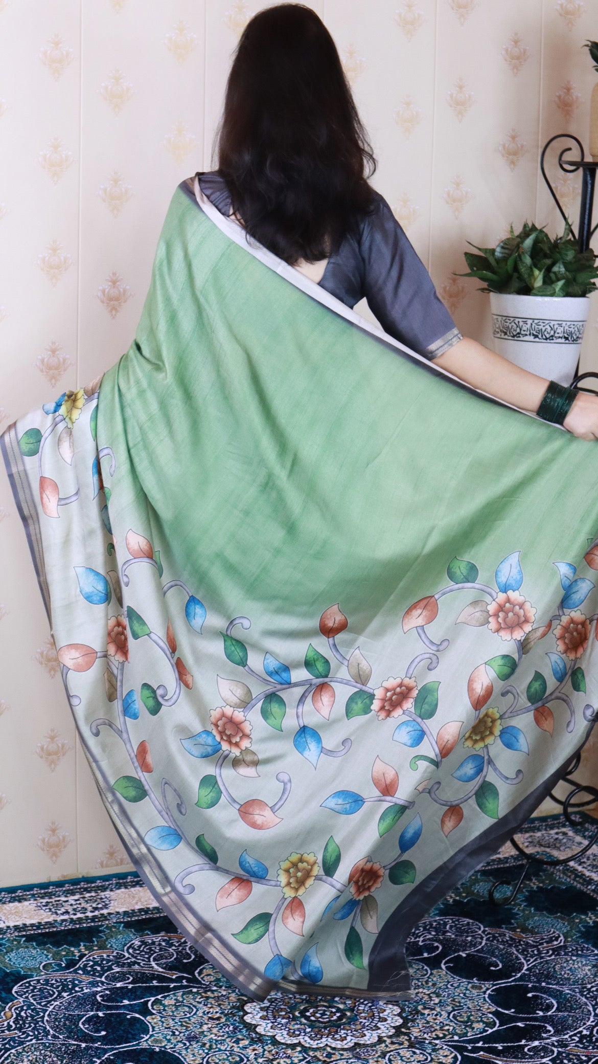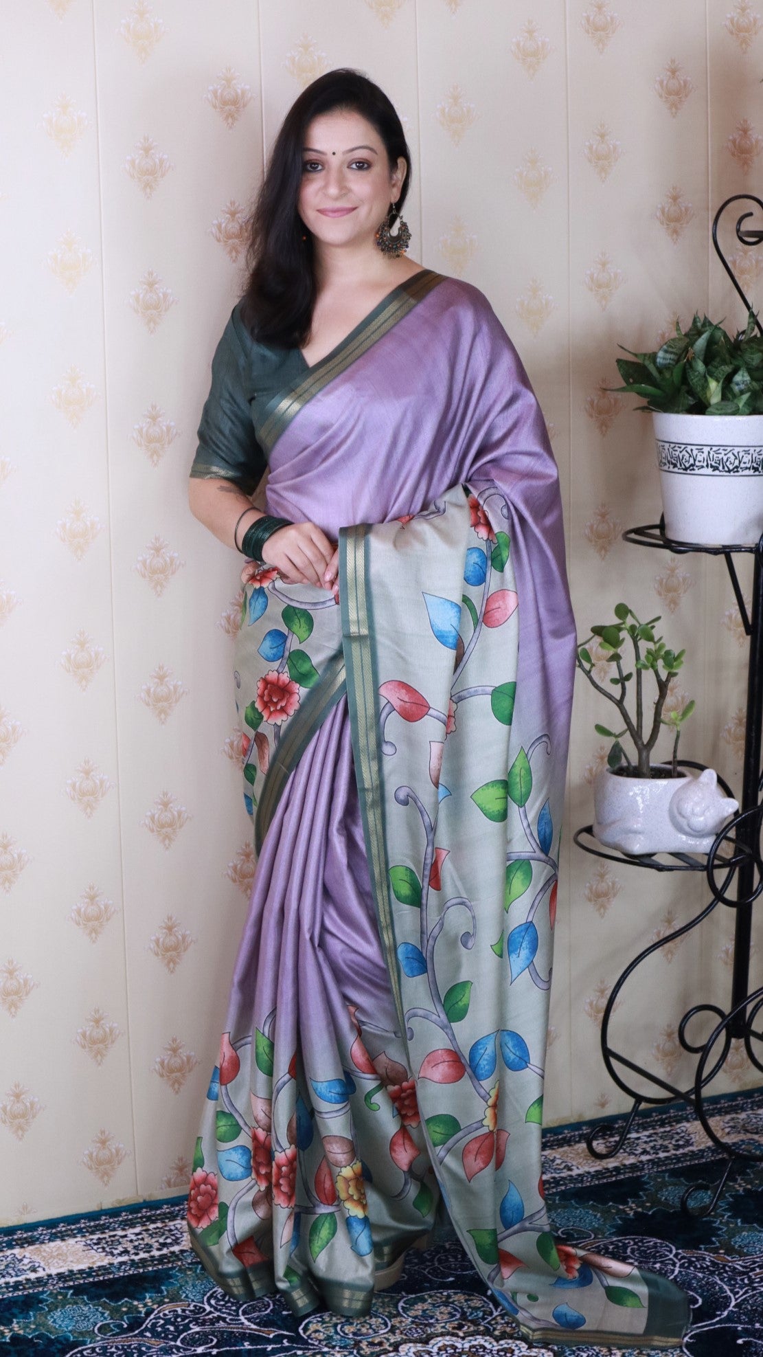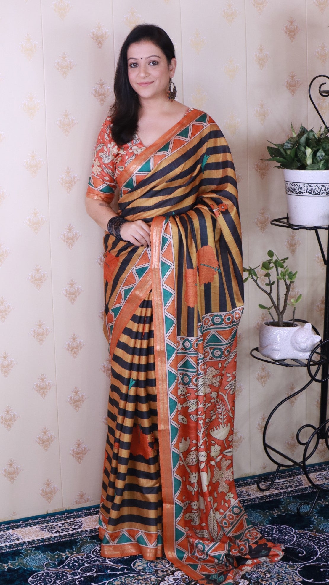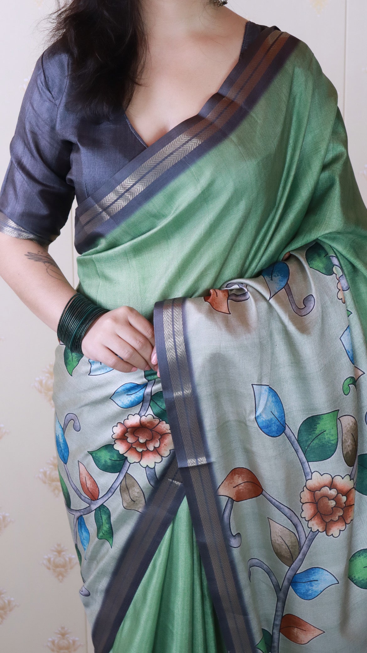 Discover the charm of tradition with this Tussar Silk Saree - crafted from soft, breathable fabric that feels gentle on the skin. Known for its rich texture and natural sheen, Tussar Silk offers a perfect balance of elegance and comfort. The fabric drapes beautifully and is light in weight, making it ideal for long hours of wear at festive occasions or special gatherings. It’s a graceful blend of style and ease, designed to keep you comfortable while looking effortlessly stunning.