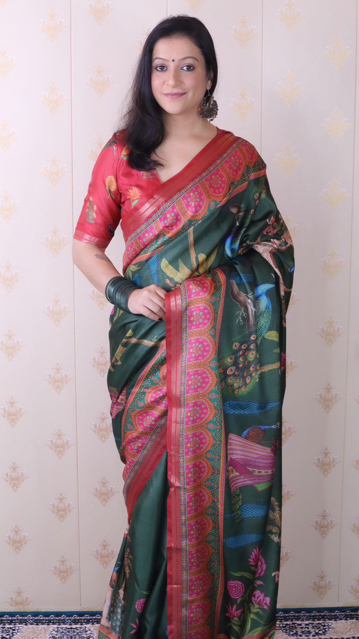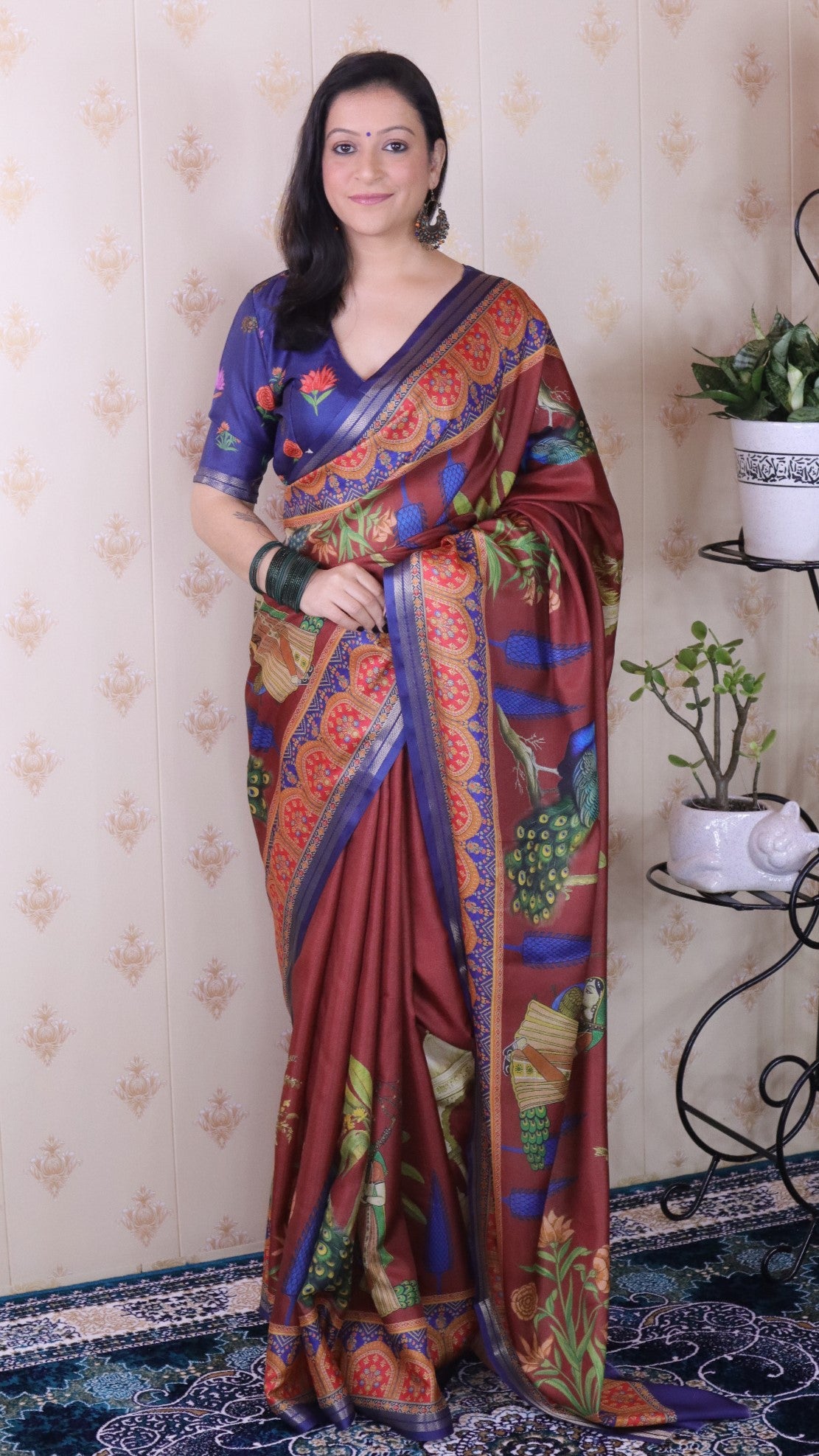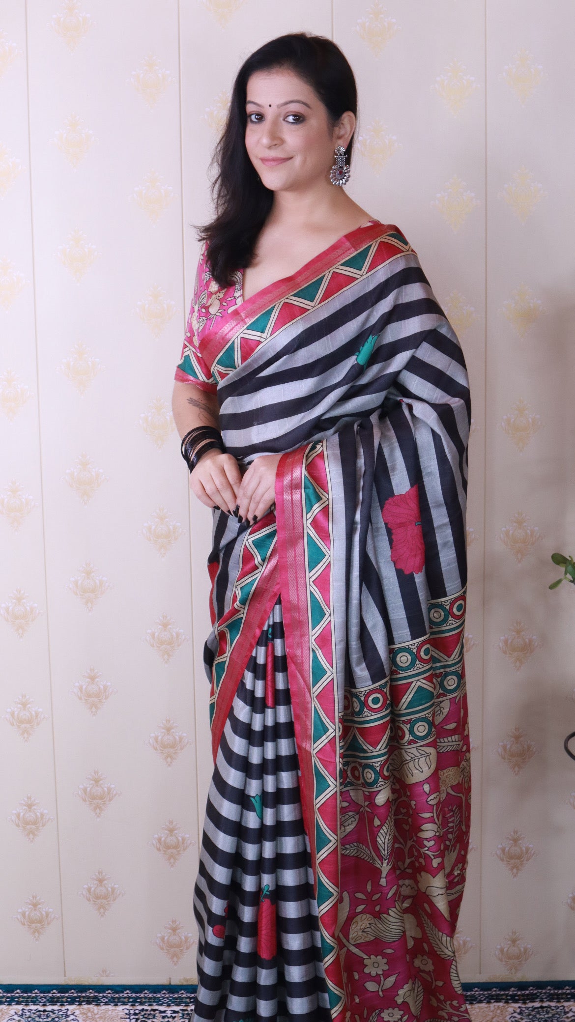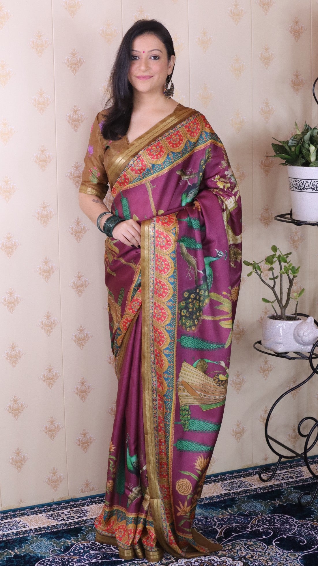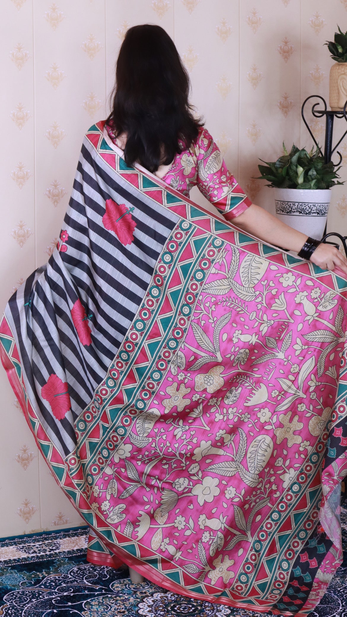 Discover the charm of tradition with this Tussar Silk Saree - crafted from soft, breathable fabric that feels gentle on the skin. Known for its rich texture and natural sheen, Tussar Silk offers a perfect balance of elegance and comfort. The fabric drapes beautifully and is light in weight, making it ideal for long hours of wear at festive occasions or special gatherings. It’s a graceful blend of style and ease, designed to keep you comfortable while looking effortlessly stunning.