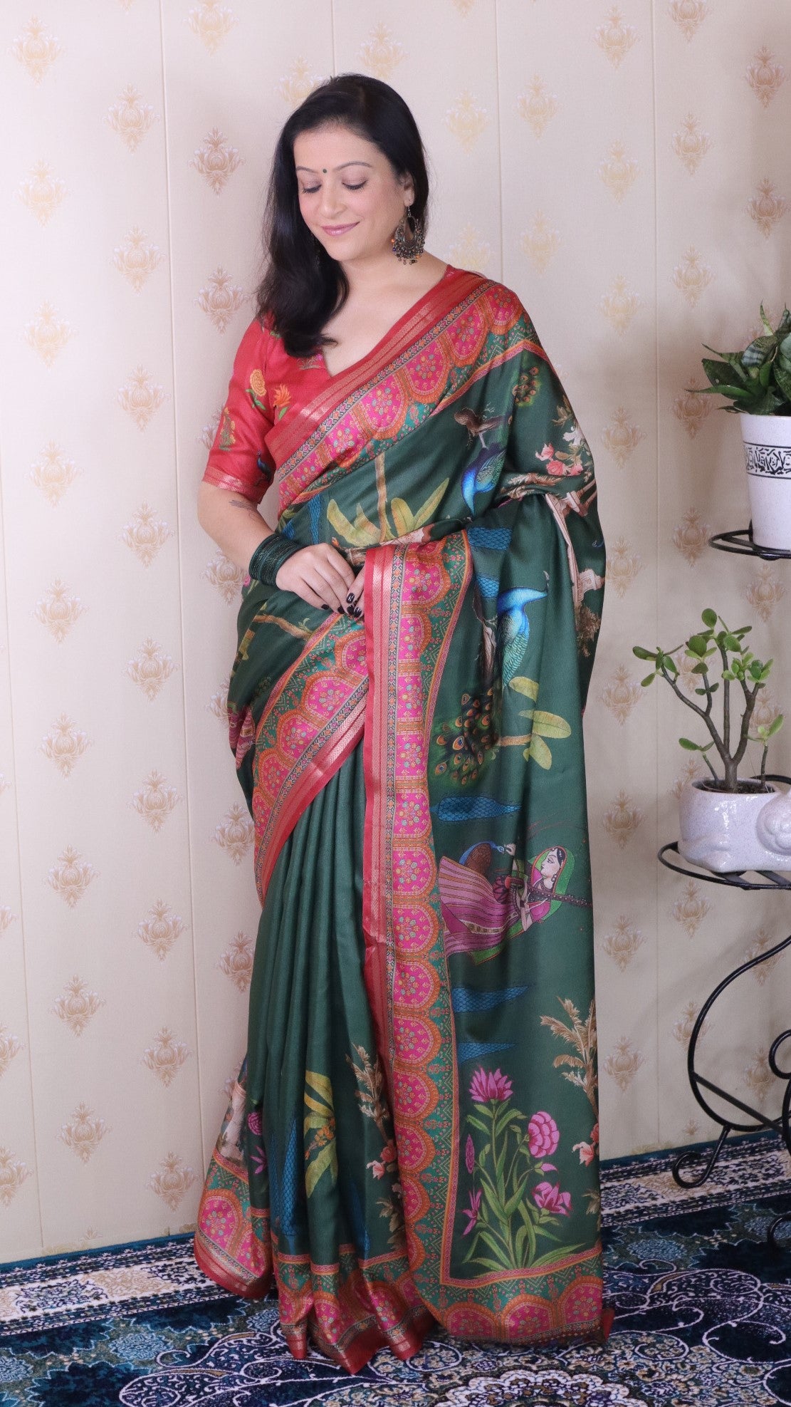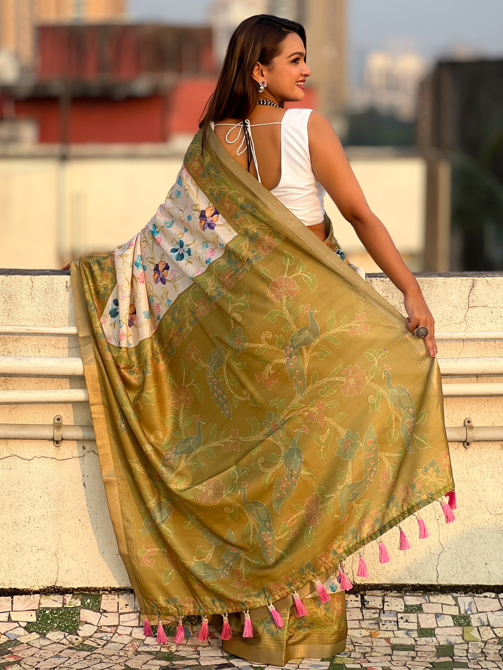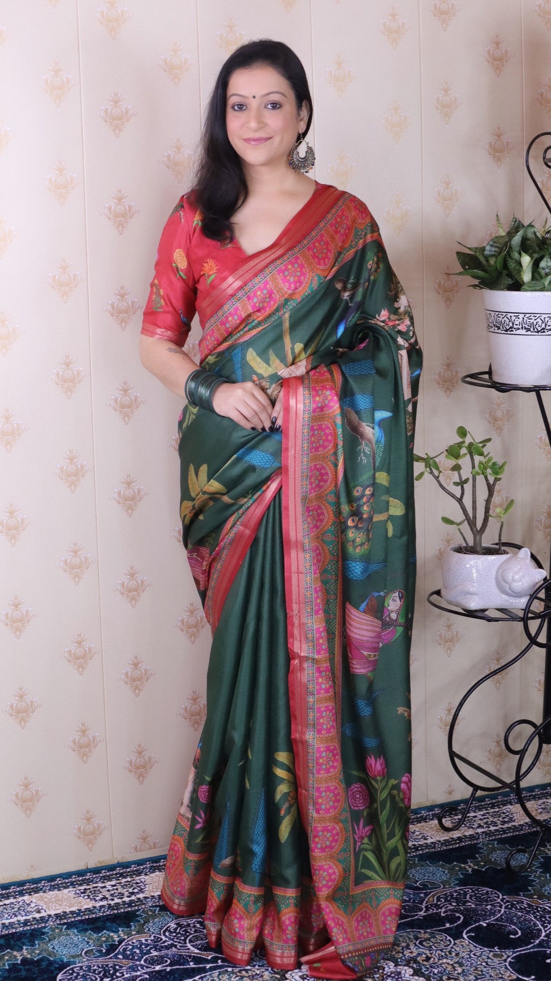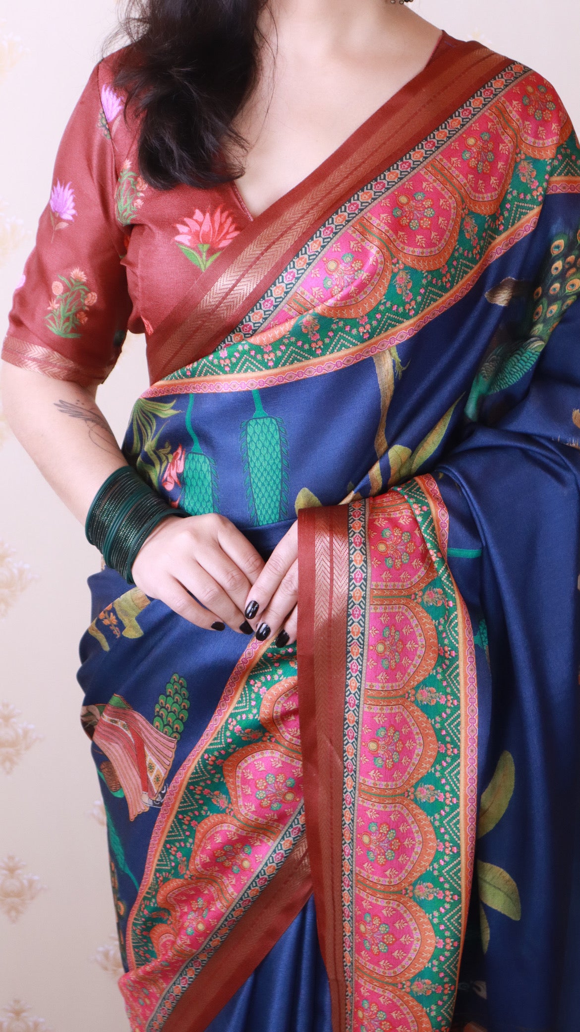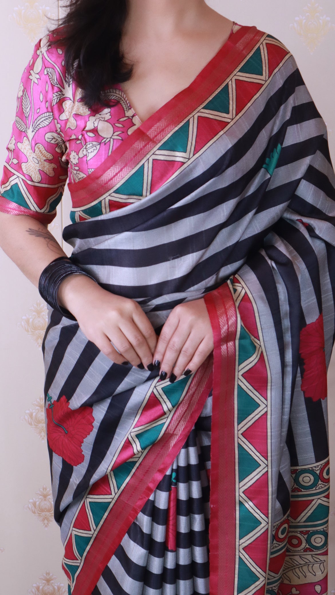 Discover the charm of tradition with this Tussar Silk Saree - crafted from soft, breathable fabric that feels gentle on the skin. Known for its rich texture and natural sheen, Tussar Silk offers a perfect balance of elegance and comfort. The fabric drapes beautifully and is light in weight, making it ideal for long hours of wear at festive occasions or special gatherings. It’s a graceful blend of style and ease, designed to keep you comfortable while looking effortlessly stunning.